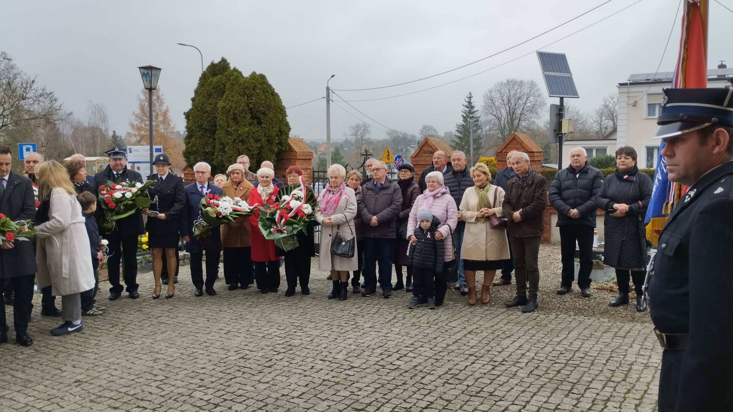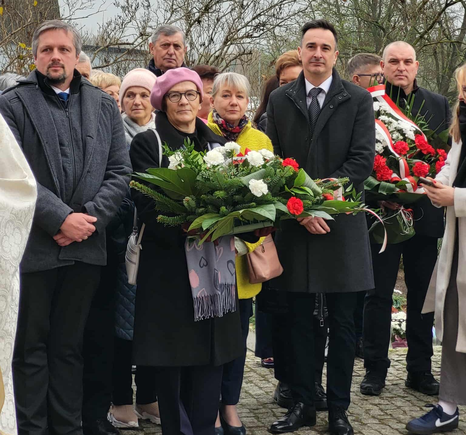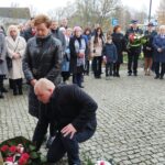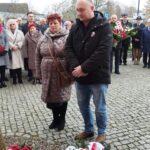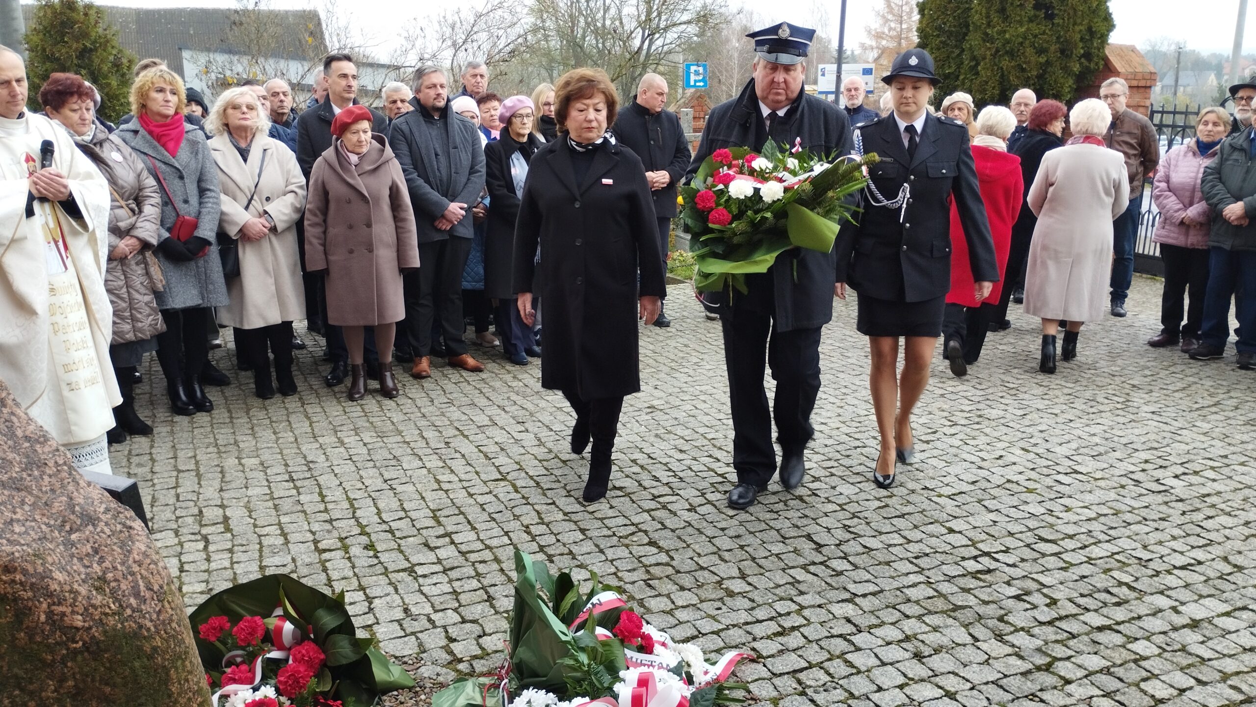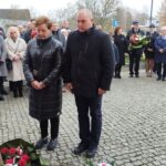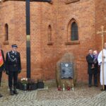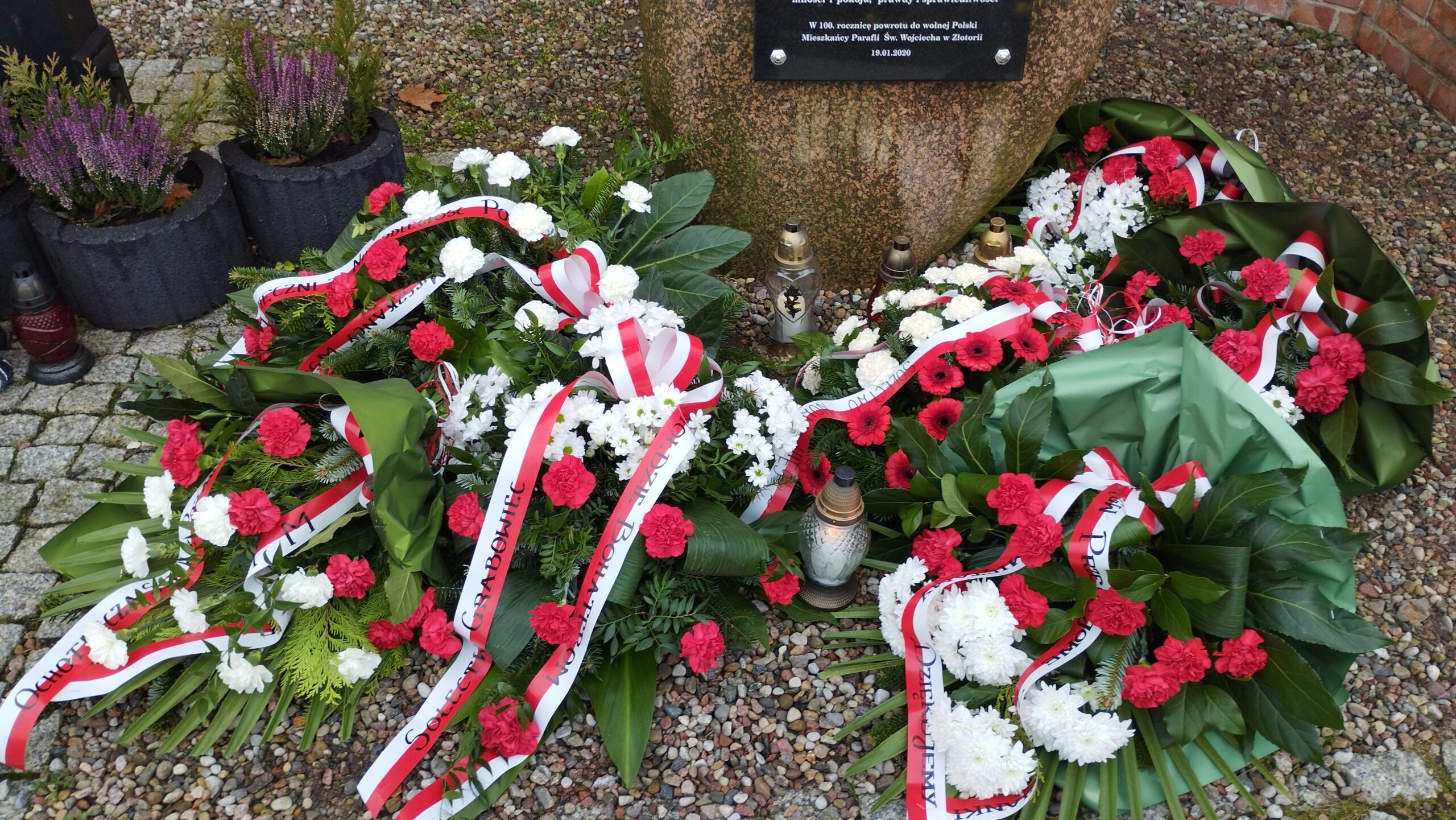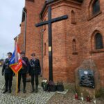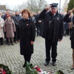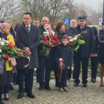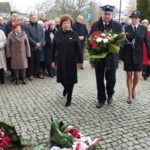 pamiątkowe wiązanki kwiatów. Kwiaty złożyli Strażacy OSP w Złotoirii; przedstawiciele