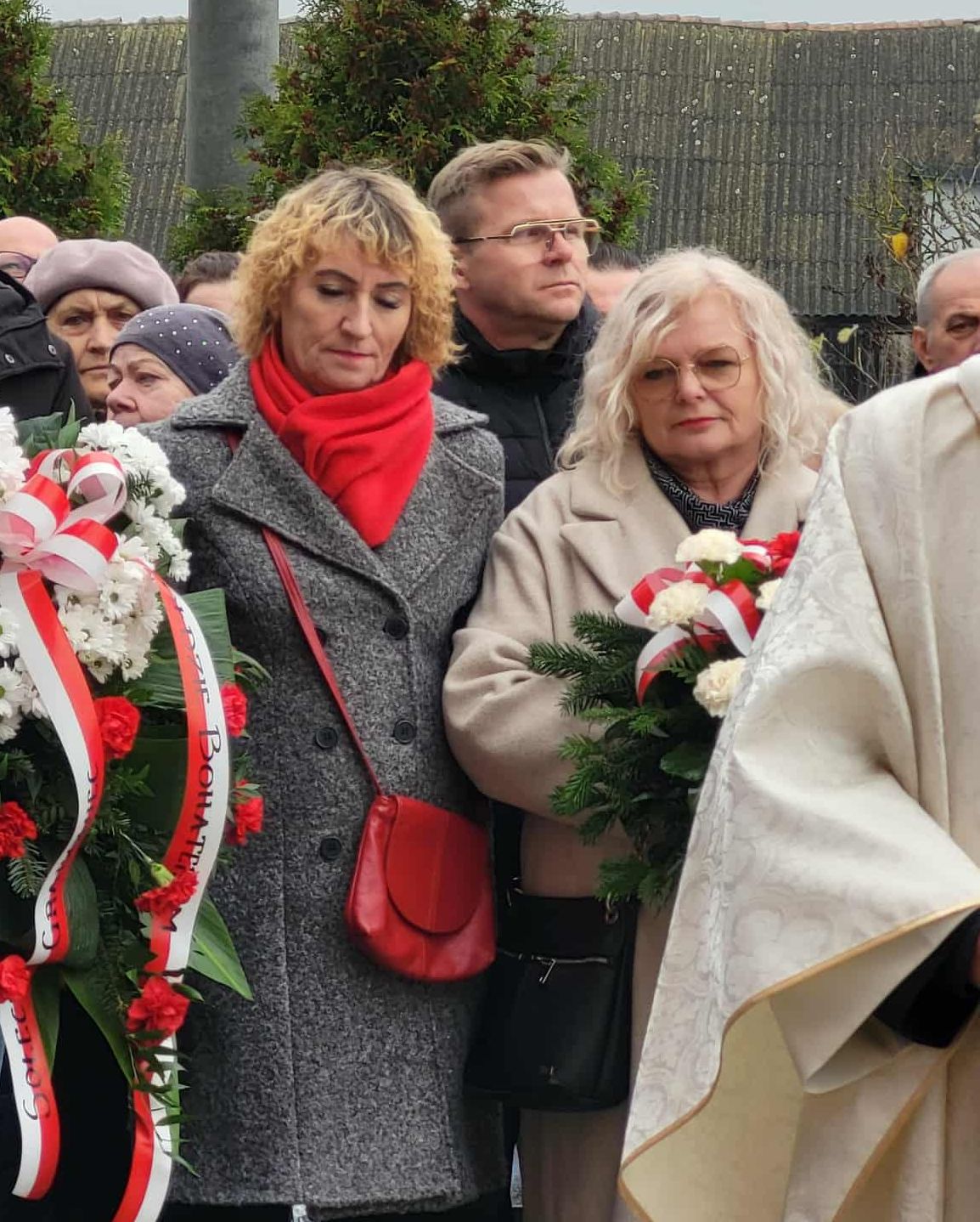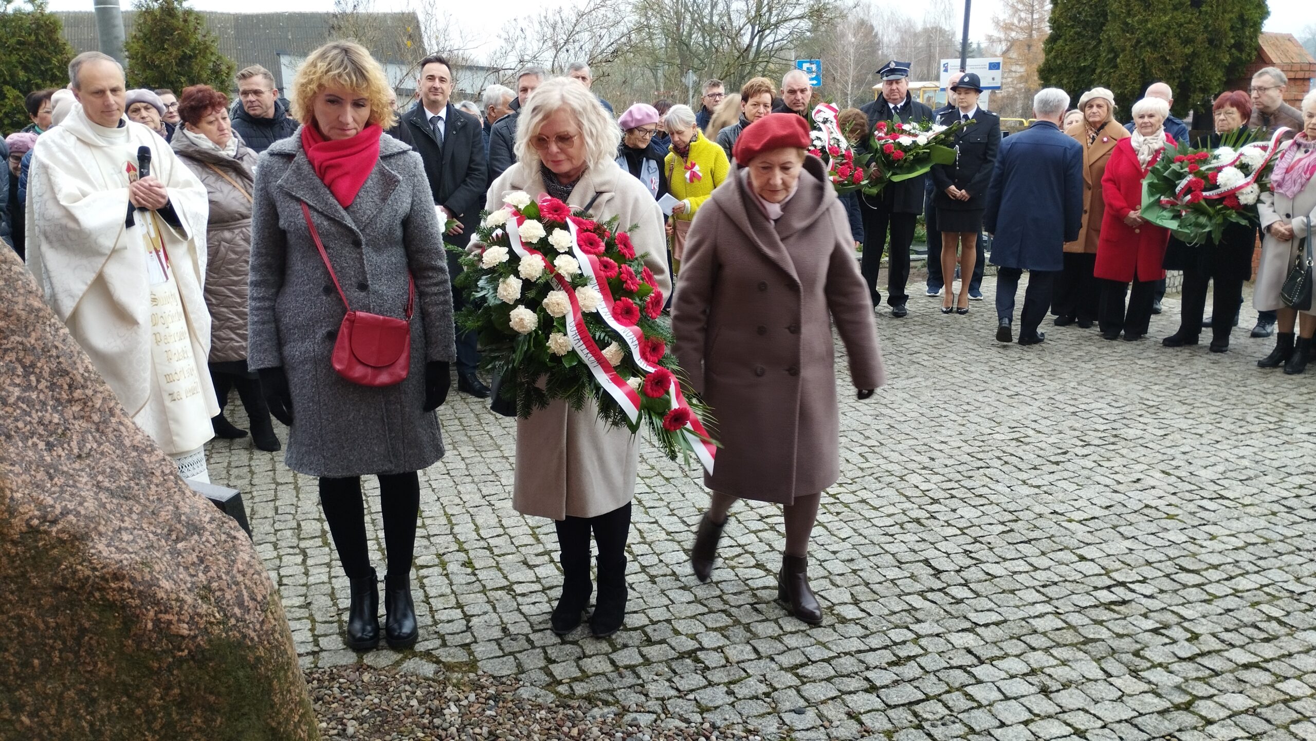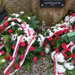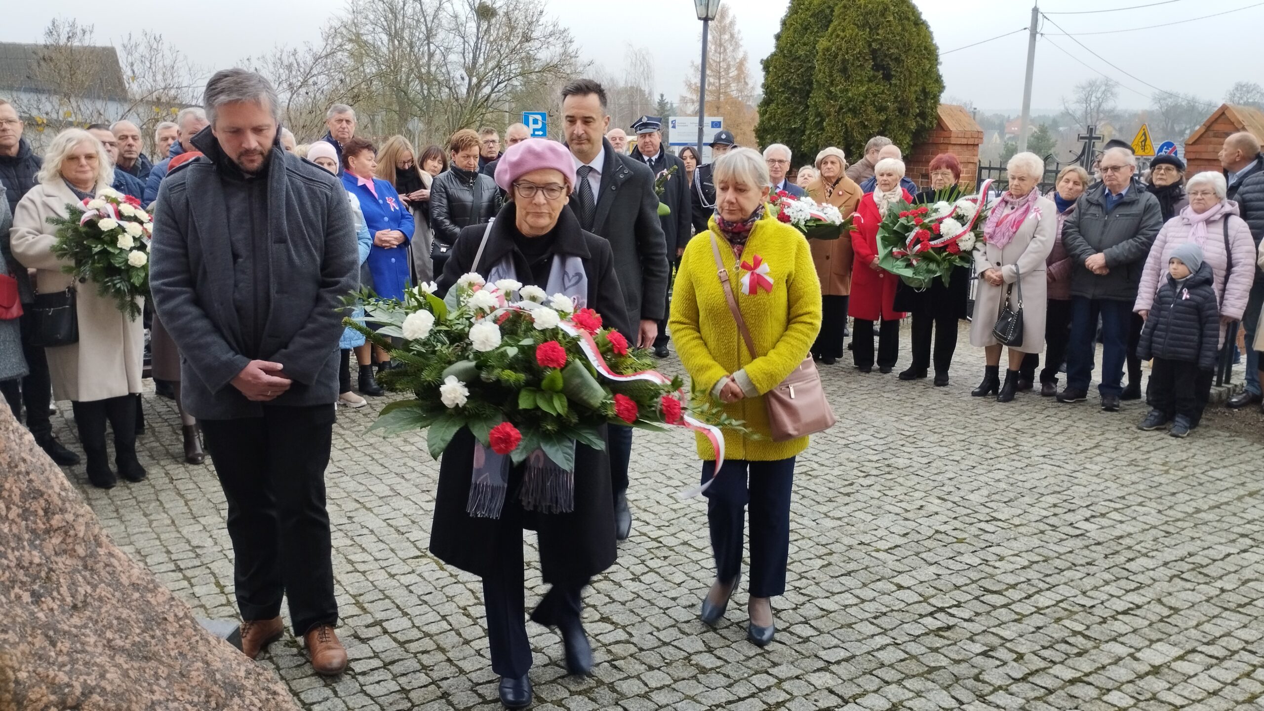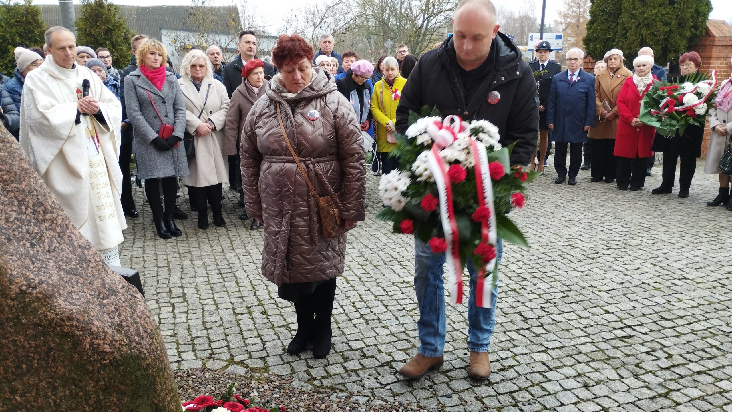 pamiątkowe wiązanki kwiatów. Kwiaty złożyli Strażacy OSP w Złotoirii; przedstawiciele